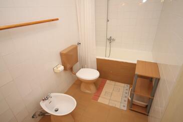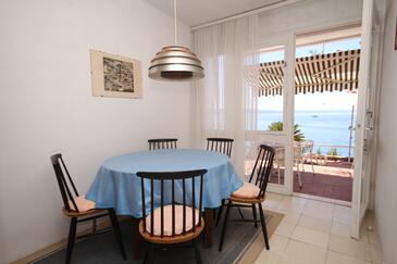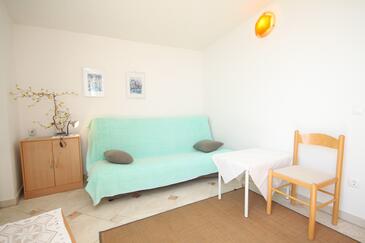 Appartamento può accogliere 5 ospiti. I letti sono disposti nelle camere da letto che sono 2, e nella camera di soggiorno, su 77m2. Gli ospiti hanno a disposizione il proprio terrazzo per godere nelle calde serate estive. Dall'appartamento si gode di una vista sul mare. Si può preparare il cibo utilizzando il barbecue comune.