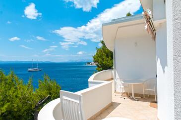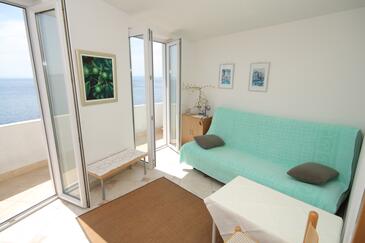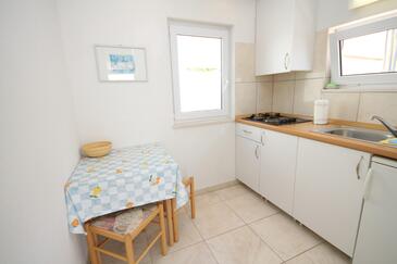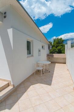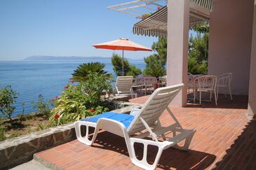 Appartamento può accogliere 5 ospiti. I letti sono disposti nelle camere da letto che sono 2, e nella camera di soggiorno, su 77m2. Gli ospiti hanno a disposizione il proprio terrazzo per godere nelle calde serate estive. Dall'appartamento si gode di una vista sul mare. Si può preparare il cibo utilizzando il barbecue comune.