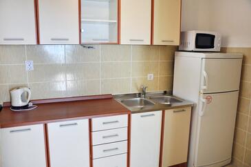 Appartamento può accogliere 9 ospiti. I letti sono disposti nelle camere da letto che sono 4, su 75m2. Gli ospiti hanno a disposizione il proprio balcone per godere delle calde serate estive. Dall'appartamento si gode di una vista sul mare. Si può preparare il cibo utilizzando il barbecue comune.