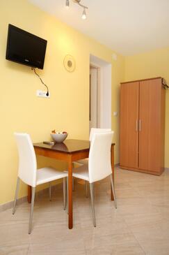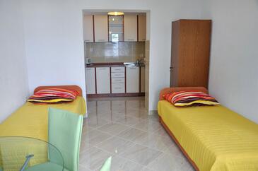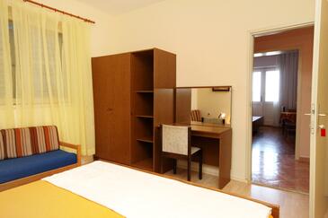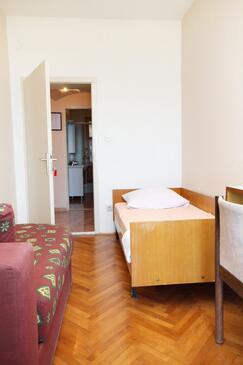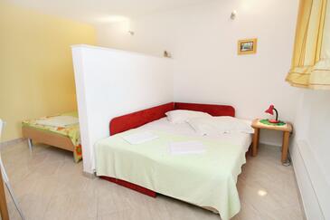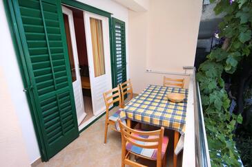 Appartamento può accogliere 9 ospiti. I letti sono disposti nelle camere da letto che sono 4, su 75m2. Gli ospiti hanno a disposizione il proprio balcone per godere delle calde serate estive. Dall'appartamento si gode di una vista sul mare. Si può preparare il cibo utilizzando il barbecue comune.