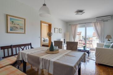Appartamento può accogliere 7 ospiti. I letti sono disposti nelle camere da letto che sono 3, su 64m2. Gli ospiti hanno a disposizione il proprio balcone per godere delle calde serate estive. Dall'appartamento si gode di una vista sul mare.