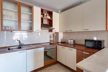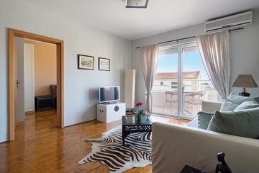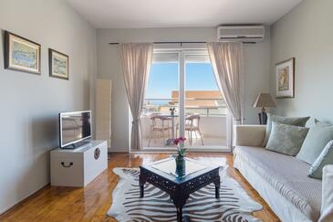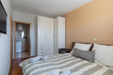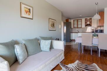 Appartamento può accogliere 7 ospiti. I letti sono disposti nelle camere da letto che sono 3, su 64m2. Gli ospiti hanno a disposizione il proprio balcone per godere delle calde serate estive. Dall'appartamento si gode di una vista sul mare.