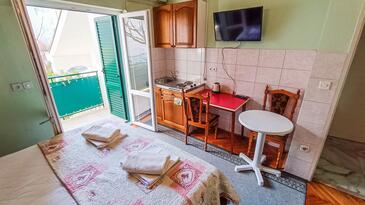 Appartamento può accogliere 3 ospiti. I letti sono disposti nelle camere da letto che sono 1, su 21m2. Gli ospiti hanno a disposizione il proprio balcone per godere delle calde serate estive. Si può preparare il cibo utilizzando il barbecue comune.