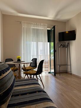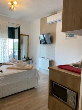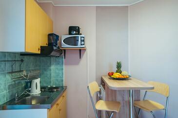 Appartamento può accogliere 4 ospiti. I letti sono disposti nelle camere da letto che sono 1, e nella camera di soggiorno, su 30m2. Gli ospiti hanno a disposizione il proprio balcone per godere delle calde serate estive. Dall'appartamento si gode di una vista sul mare. Si può preparare il cibo utilizzando il barbecue comune. Durante il soggiorno gli ospiti possono utilizzare la piscina comune.