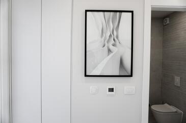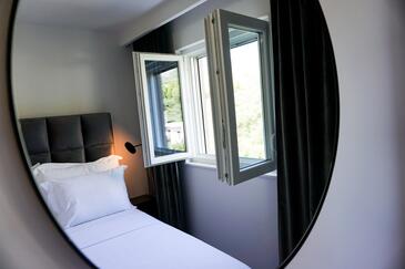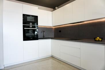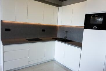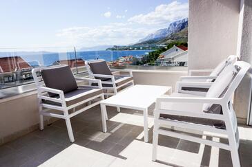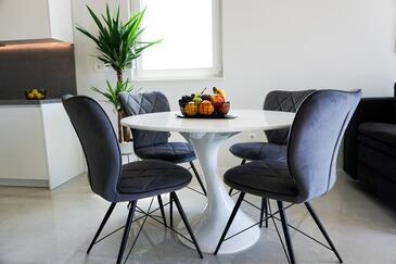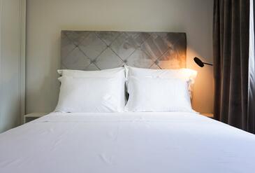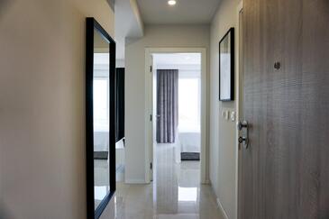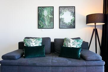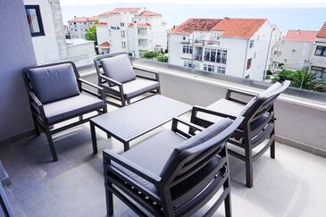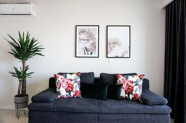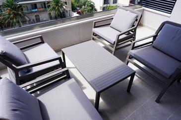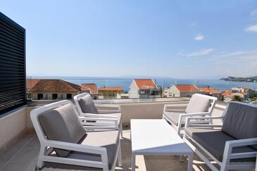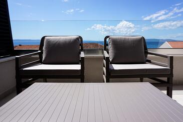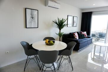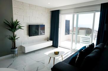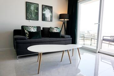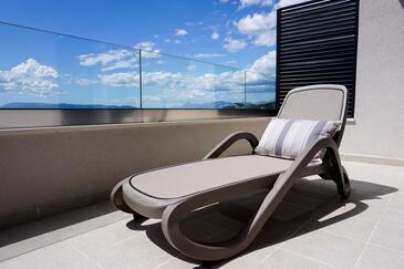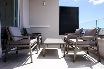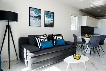 Appartamento può accogliere 5 ospiti. I letti sono disposti nelle camere da letto che sono 2, e nella camera di soggiorno, su 62m2. Gli ospiti hanno a disposizione il proprio terrazzo per godere nelle calde serate estive. Dall'appartamento si gode di una vista sul mare.