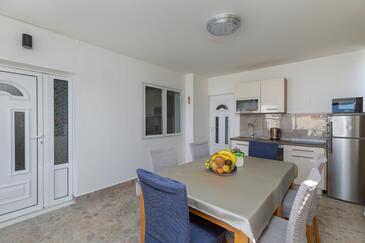 Appartamento può accogliere 6 ospiti. I letti sono disposti nelle camere da letto che sono 2, su 48m2. Gli ospiti hanno a disposizione il proprio terrazzo per godere nelle calde serate estive. Dall'appartamento si gode di una vista sul mare. Le stanze dell'unità d'alloggio non sono connesse in un insieme. L'unità d'alloggio ha delle stanze separate dal resto dell'unità.