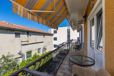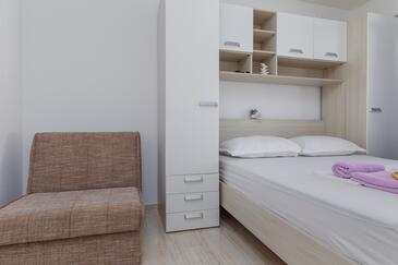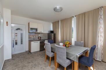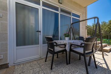 Appartamento può accogliere 6 ospiti. I letti sono disposti nelle camere da letto che sono 2, su 48m2. Gli ospiti hanno a disposizione il proprio terrazzo per godere nelle calde serate estive. Dall'appartamento si gode di una vista sul mare. Le stanze dell'unità d'alloggio non sono connesse in un insieme. L'unità d'alloggio ha delle stanze separate dal resto dell'unità.