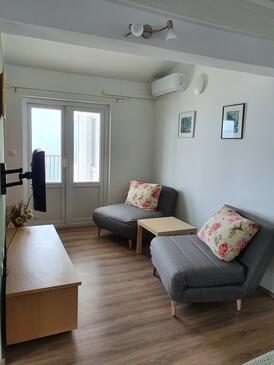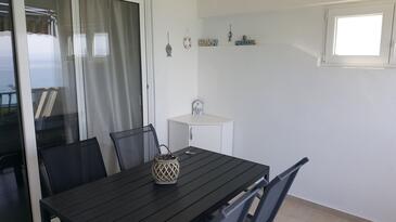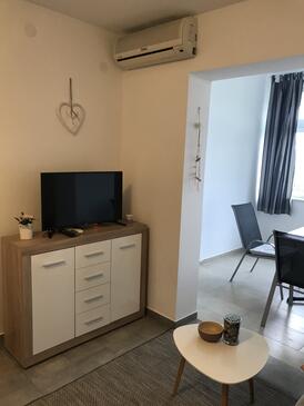 Appartamento può accogliere 6 ospiti. I letti sono disposti nelle camere da letto che sono 2, e nella camera di soggiorno, su 52m2. Gli ospiti hanno a disposizione il proprio terrazzo per godere nelle calde serate estive. Dall'appartamento si gode di una vista sul mare. Si può preparare il cibo utilizzando il barbecue comune.