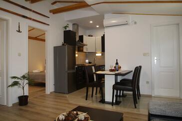 Casa può accogliere 8 ospiti. I letti sono disposti nelle camere da letto che sono 3, e nella camera di soggiorno, su 67m2. Gli ospiti hanno a disposizione il proprio terrazzo per godere nelle calde serate estive. Per il piacere totale e il relax c'è il barbecue privato solo per gli ospiti di quest'alloggio. Durante il soggiorno gli ospiti si possono rilassare nella piscina privata. Nell'unità di alloggio si possono portare gli animali domestici con un pagamento supplementare.