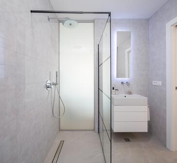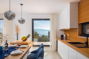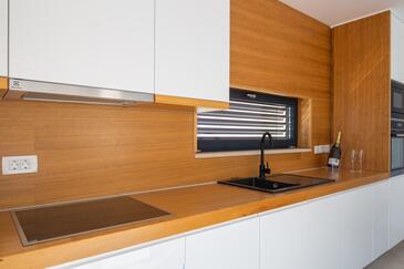 Casa può accogliere 8 ospiti. I letti sono disposti nelle camere da letto che sono 3, e nella camera di soggiorno, su 122m2. Gli ospiti hanno a disposizione il proprio terrazzo per godere nelle calde serate estive. Dalla casa si gode di una vista sul mare. Per il piacere totale e il relax c'è il barbecue privato solo per gli ospiti di quest'alloggio. Durante il soggiorno gli ospiti si possono rilassare nella piscina privata. Nell'unità di alloggio si possono portare gli animali domestici senza alcun pagamento supplementare. Arrivati nell'unità d'alloggio i clienti devono pagare un deposito (il prezzo è indicato sul sito).