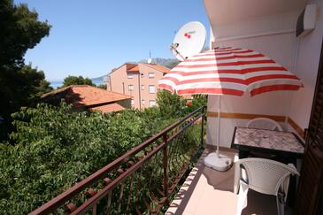 Appartamento può accogliere 6 ospiti. I letti sono disposti nelle camere da letto che sono 3, su 70m2. Gli ospiti hanno a disposizione il proprio terrazzo per godere nelle calde serate estive. Dall'appartamento si gode di una vista sul mare.