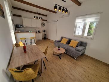 Appartamento può accogliere 6 ospiti. I letti sono disposti nelle camere da letto che sono 2, e nella camera di soggiorno, su 43m2. Gli ospiti hanno a disposizione il proprio terrazzo per godere nelle calde serate estive. Dall'appartamento si gode di una vista sul mare. Nell'unità di alloggio si possono portare gli animali domestici con un pagamento supplementare.