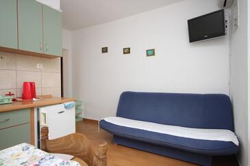 Appartamento può accogliere 4 ospiti. I letti sono disposti nelle camere da letto che sono 1, e nella camera di soggiorno, su 30m2. Gli ospiti hanno a disposizione il proprio balcone per godere delle calde serate estive. Dall'appartamento si gode di una vista sul mare. Si può preparare il cibo utilizzando il barbecue comune.