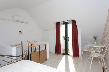 Casa può accogliere 4 ospiti. I letti sono disposti nelle camere da letto che sono 1, e nella camera di soggiorno, su 49m2. Gli ospiti hanno a disposizione il proprio terrazzo per godere nelle calde serate estive. Dalla casa si gode di una vista sul mare. Per il piacere totale e il relax c'è il barbecue privato solo per gli ospiti di quest'alloggio.