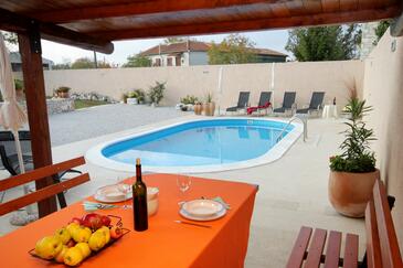 Casa può accogliere 8 ospiti. I letti sono disposti nelle camere da letto che sono 4, e nella camera di soggiorno, su 154m2. Gli ospiti hanno a disposizione il proprio terrazzo per godere nelle calde serate estive. Per il piacere totale e il relax c'è il barbecue privato solo per gli ospiti di quest'alloggio. Durante il soggiorno gli ospiti si possono rilassare nella piscina privata. Arrivati nell'unità d'alloggio i clienti devono pagare un deposito (il prezzo è indicato sul sito).