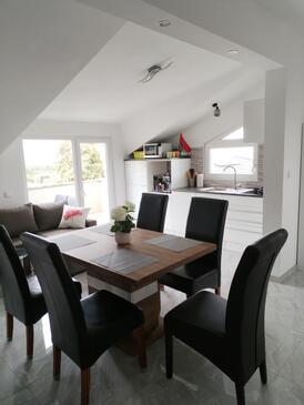 Appartamento può accogliere 4 ospiti. I letti sono disposti nelle camere da letto che sono 2, su 48m2. Gli ospiti hanno a disposizione il proprio terrazzo per godere nelle calde serate estive. Dall'appartamento si gode di una vista sul mare. Si può preparare il cibo utilizzando il barbecue comune.