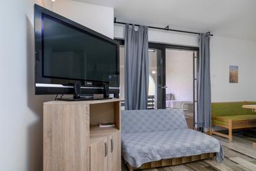 Appartamento può accogliere 5 ospiti. I letti sono disposti nelle camere da letto che sono 2, e nella camera di soggiorno, su 47m2. Gli ospiti hanno a disposizione il proprio terrazzo per godere nelle calde serate estive. Si può preparare il cibo utilizzando il barbecue comune. Nell'unità di alloggio si possono portare gli animali domestici con un pagamento supplementare.