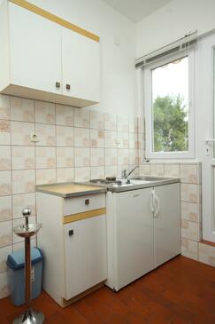 Appartamento può accogliere 4 ospiti. I letti sono disposti nelle camere da letto che sono 2, su 50m2. Gli ospiti hanno a disposizione il proprio terrazzo per godere nelle calde serate estive. Si può preparare il cibo utilizzando il barbecue comune. Nell'unità di alloggio si possono portare gli animali domestici con un pagamento supplementare. L'unità d'alloggio ha delle stanze separate dal resto dell'unità.