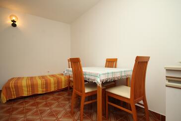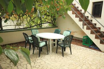 Appartamento può accogliere 4 ospiti. I letti sono disposti nelle camere da letto che sono 2, su 50m2. Gli ospiti hanno a disposizione il proprio terrazzo per godere nelle calde serate estive. Si può preparare il cibo utilizzando il barbecue comune. Nell'unità di alloggio si possono portare gli animali domestici con un pagamento supplementare. L'unità d'alloggio ha delle stanze separate dal resto dell'unità.