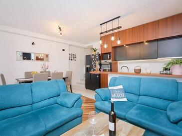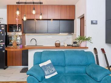 Appartamento può accogliere 5 ospiti. I letti sono disposti nelle camere da letto che sono 2, e nella camera di soggiorno, su 59m2. Gli ospiti hanno a disposizione il proprio terrazzo per godere nelle calde serate estive. Dall'appartamento si gode di una vista sul mare. Si può preparare il cibo utilizzando il barbecue comune.
