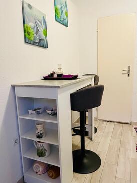 Appartamento può accogliere 4 ospiti. I letti sono disposti nelle camere da letto che sono 2, su 41m2. Gli ospiti hanno a disposizione il proprio terrazzo per godere nelle calde serate estive. Dall'appartamento si gode di una vista sul mare. Si può preparare il cibo utilizzando il barbecue comune.