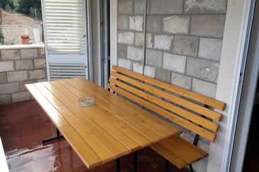 Appartamento può accogliere 5 ospiti. I letti sono disposti nelle camere da letto che sono 2, su 39m2. Gli ospiti hanno a disposizione il proprio terrazzo per godere nelle calde serate estive. Dall'appartamento si gode di una vista sul mare. Si può preparare il cibo utilizzando il barbecue comune.