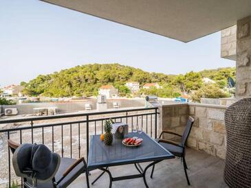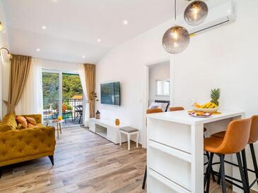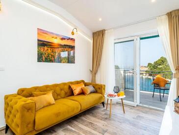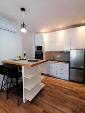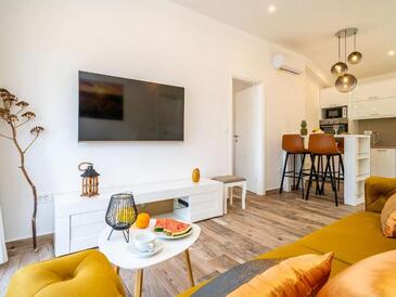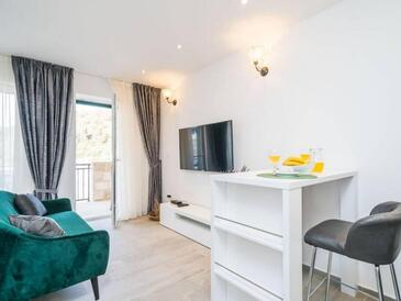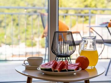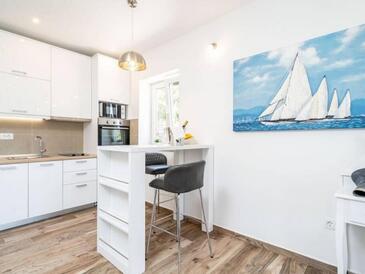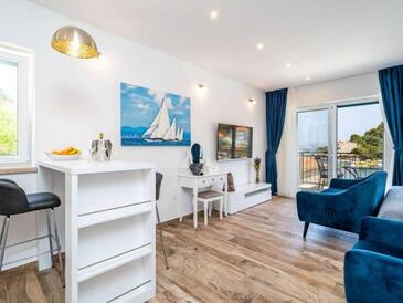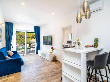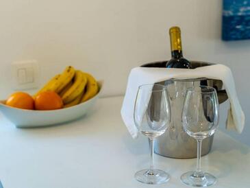 Appartamento può accogliere 4 ospiti. I letti sono disposti nelle camere da letto che sono 2, su 60m2. Gli ospiti hanno a disposizione il proprio terrazzo per godere nelle calde serate estive. Dall'appartamento si gode di una vista sul mare. Durante il soggiorno gli ospiti possono utilizzare la piscina comune. L'unità d'alloggio ha delle stanze separate dal resto dell'unità.