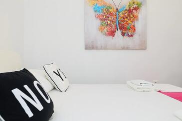 Appartamento può accogliere 6 ospiti. I letti sono disposti nelle camere da letto che sono 2, e nella camera di soggiorno, su 62m2. Gli ospiti hanno a disposizione il proprio balcone per godere delle calde serate estive. Dall'appartamento si gode di una vista sul mare.