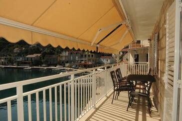 Appartamento può accogliere 6 ospiti. I letti sono disposti nelle camere da letto che sono 2, e nella camera di soggiorno, su 62m2. Gli ospiti hanno a disposizione il proprio balcone per godere delle calde serate estive. Dall'appartamento si gode di una vista sul mare.