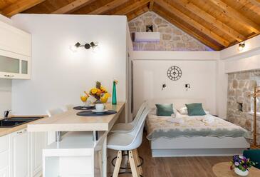 Monolocale può accogliere 2 ospiti. I letti sono disposti nelle camere da letto che sono 1, su 26m2. Gli ospiti hanno a disposizione il proprio terrazzo per godere nelle calde serate estive. Per il piacere totale e il relax c'è il barbecue privato solo per gli ospiti di quest'alloggio.