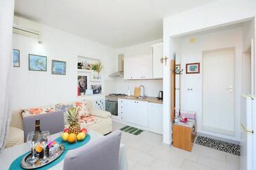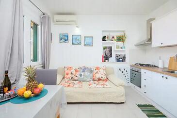Appartamento può accogliere 2 ospiti. I letti sono disposti nelle camere da letto che sono 1, su 32m2. Gli ospiti hanno a disposizione il proprio terrazzo per godere nelle calde serate estive. Dall'appartamento si gode di una vista sul mare.