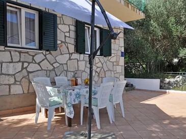 Appartamento può accogliere 6 ospiti. I letti sono disposti nelle camere da letto che sono 3, su 51m2. Gli ospiti hanno a disposizione il proprio terrazzo per godere nelle calde serate estive. Dall'appartamento si gode di una vista sul mare. Si può preparare il cibo utilizzando il barbecue comune.