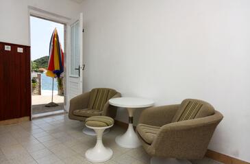 Casa può accogliere 8 ospiti. I letti sono disposti nelle camere da letto che sono 4, su 72m2. Gli ospiti hanno a disposizione il proprio terrazzo per godere nelle calde serate estive. Dalla casa si gode di una vista sul mare. Si può preparare il cibo utilizzando il barbecue comune. Le stanze dell'unità d'alloggio non sono connesse in un insieme.
