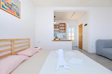 Monolocale può accogliere 2 ospiti. I letti sono disposti nelle camere da letto che sono 1, su 17m2. Gli ospiti hanno a disposizione il proprio balcone per godere delle calde serate estive. Dal monolocale si gode di una vista sul mare. Si può preparare il cibo utilizzando il barbecue comune. Nell'unità di alloggio si possono portare gli animali domestici senza alcun pagamento supplementare.