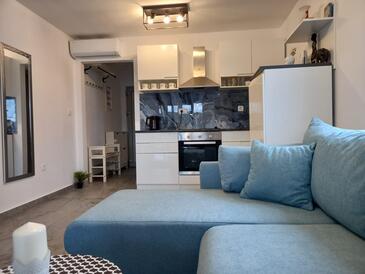 Appartamento può accogliere 3 ospiti. I letti sono disposti nelle camere da letto che sono 1, su 70m2. Gli ospiti hanno a disposizione il proprio balcone per godere delle calde serate estive. Dall'appartamento si gode di una vista sul mare. Si può preparare il cibo utilizzando il barbecue comune.