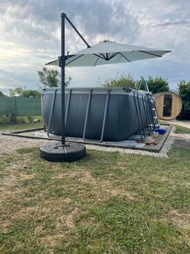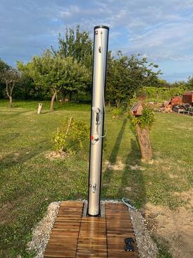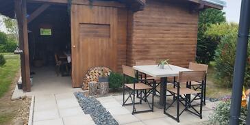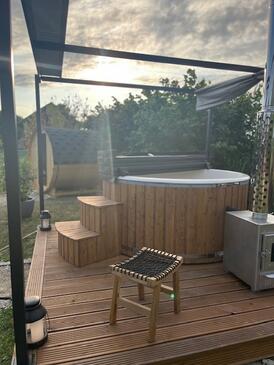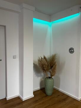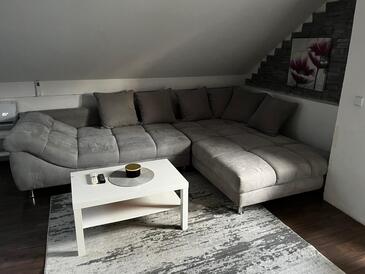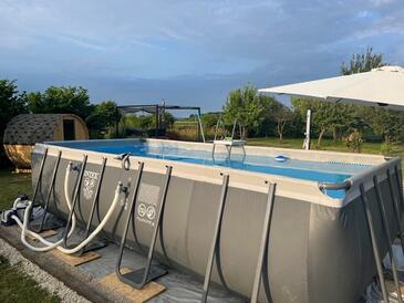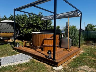 Appartamento può accogliere 4 ospiti. I letti sono disposti nelle camere da letto che sono 2, e nella camera di soggiorno, su 60m2. Gli ospiti hanno a disposizione il proprio terrazzo per godere nelle calde serate estive. Per il piacere totale e il relax c'è il barbecue privato solo per gli ospiti di quest'alloggio. Durante il soggiorno gli ospiti possono utilizzare la piscina comune. Nell'unità di alloggio si possono portare gli animali domestici con un pagamento supplementare.