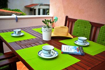 Appartamento può accogliere 4 ospiti. I letti sono disposti nelle camere da letto che sono 2, su 46m2. Gli ospiti hanno a disposizione il proprio terrazzo per godere nelle calde serate estive. Dall'appartamento si gode di una vista sul mare. Si può preparare il cibo utilizzando il barbecue comune.