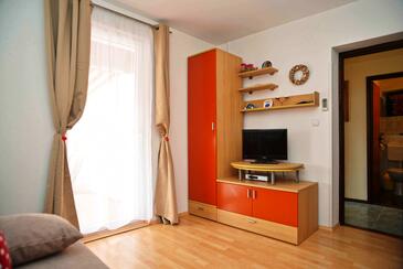Appartamento può accogliere 4 ospiti. I letti sono disposti nelle camere da letto che sono 2, su 46m2. Gli ospiti hanno a disposizione il proprio terrazzo per godere nelle calde serate estive. Dall'appartamento si gode di una vista sul mare. Si può preparare il cibo utilizzando il barbecue comune.
