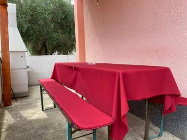 Appartamento può accogliere 6 ospiti. I letti sono disposti nelle camere da letto che sono 2, e nella camera di soggiorno, su 51m2. Gli ospiti hanno a disposizione il proprio terrazzo per godere nelle calde serate estive. Per il piacere totale e il relax c'è il barbecue privato solo per gli ospiti di quest'alloggio. Nell'unità di alloggio si possono portare gli animali domestici con un pagamento supplementare.