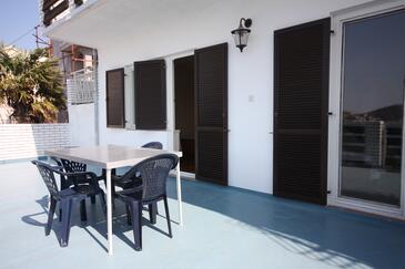 Appartamento può accogliere 4 ospiti. I letti sono disposti nelle camere da letto che sono 2, su 66m2. Gli ospiti hanno a disposizione il proprio terrazzo per godere nelle calde serate estive. Dall'appartamento si gode di una vista sul mare. Si può preparare il cibo utilizzando il barbecue comune.