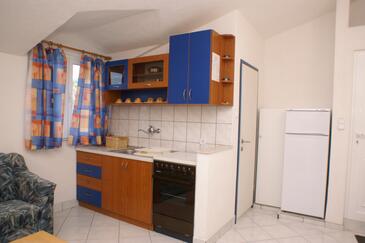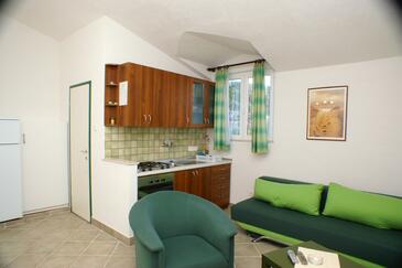 Appartamento può accogliere 6 ospiti. I letti sono disposti nelle camere da letto che sono 3, su 66m2. Gli ospiti hanno a disposizione il proprio terrazzo per godere nelle calde serate estive. Dall'appartamento si gode di una vista sul mare. Si può preparare il cibo utilizzando il barbecue comune. Nell'unità di alloggio si possono portare gli animali domestici con un pagamento supplementare.