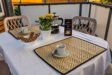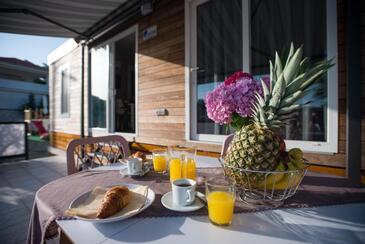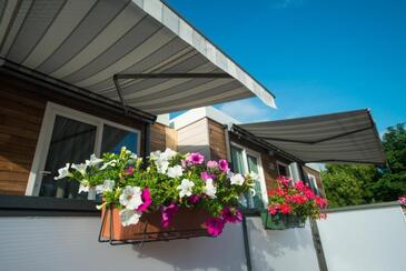 Appartamento può accogliere 5 ospiti. I letti sono disposti nelle camere da letto che sono 2, e nella camera di soggiorno, su 34m2. Gli ospiti hanno a disposizione il proprio terrazzo per godere nelle calde serate estive. Si può preparare il cibo utilizzando il barbecue comune. Durante il soggiorno gli ospiti possono utilizzare la piscina comune.