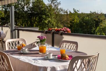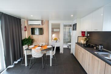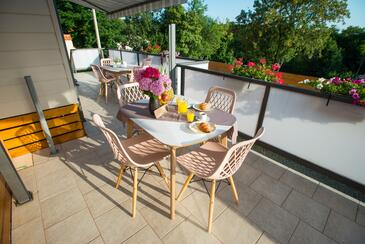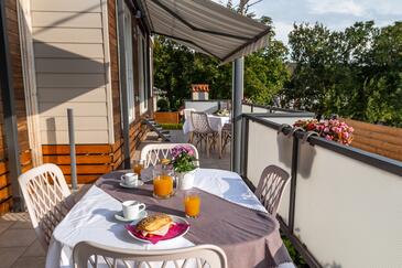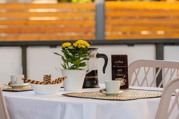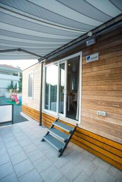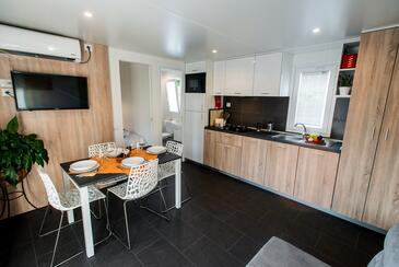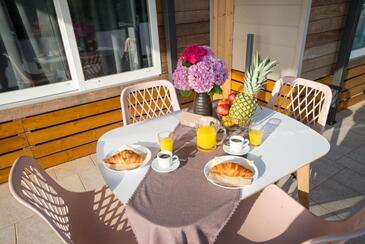 Appartamento può accogliere 5 ospiti. I letti sono disposti nelle camere da letto che sono 2, e nella camera di soggiorno, su 34m2. Gli ospiti hanno a disposizione il proprio terrazzo per godere nelle calde serate estive. Si può preparare il cibo utilizzando il barbecue comune. Durante il soggiorno gli ospiti possono utilizzare la piscina comune.