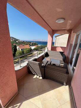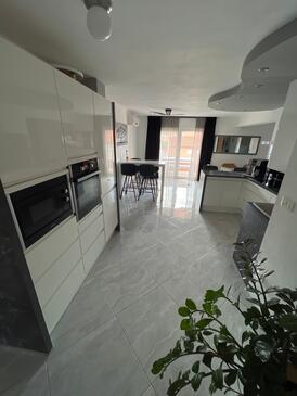 Appartamento può accogliere 6 ospiti. I letti sono disposti nelle camere da letto che sono 3, su 113m2. Gli ospiti hanno a disposizione il proprio terrazzo per godere nelle calde serate estive. Dall'appartamento si gode di una vista sul mare. Si può preparare il cibo utilizzando il barbecue comune. Durante il soggiorno gli ospiti possono utilizzare la piscina comune. Arrivati nell'unità d'alloggio i clienti devono pagare un deposito (il prezzo è indicato sul sito).