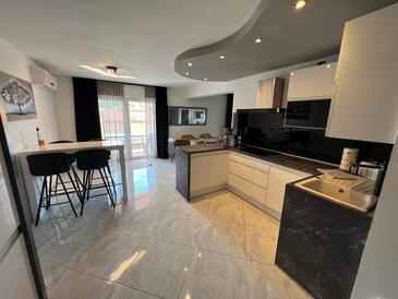 Appartamento può accogliere 6 ospiti. I letti sono disposti nelle camere da letto che sono 3, su 113m2. Gli ospiti hanno a disposizione il proprio terrazzo per godere nelle calde serate estive. Dall'appartamento si gode di una vista sul mare. Si può preparare il cibo utilizzando il barbecue comune. Durante il soggiorno gli ospiti possono utilizzare la piscina comune. Arrivati nell'unità d'alloggio i clienti devono pagare un deposito (il prezzo è indicato sul sito).