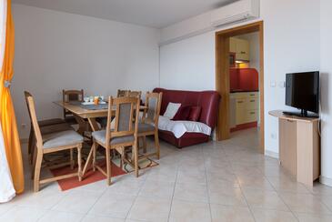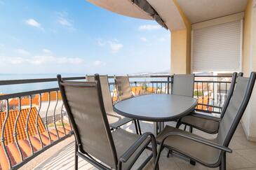 Appartamento può accogliere 8 ospiti. I letti sono disposti nelle camere da letto che sono 4, su 87m2. Gli ospiti hanno a disposizione il proprio terrazzo per godere nelle calde serate estive. Dall'appartamento si gode di una vista sul mare. Si può preparare il cibo utilizzando il barbecue comune.