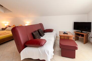 Appartamento può accogliere 8 ospiti. I letti sono disposti nelle camere da letto che sono 4, su 87m2. Gli ospiti hanno a disposizione il proprio terrazzo per godere nelle calde serate estive. Dall'appartamento si gode di una vista sul mare. Si può preparare il cibo utilizzando il barbecue comune.