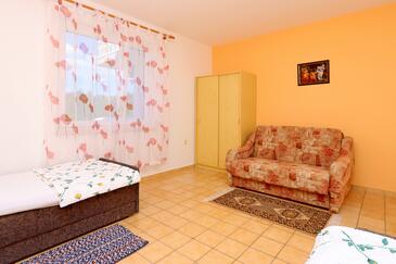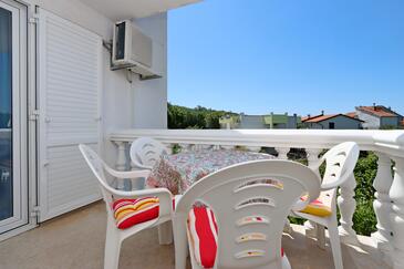 Appartamento può accogliere 4 ospiti. I letti sono disposti nelle camere da letto che sono 2, su 50m2. Gli ospiti hanno a disposizione il proprio balcone per godere delle calde serate estive. Dall'appartamento si gode di una vista sul mare. Si può preparare il cibo utilizzando il barbecue comune.