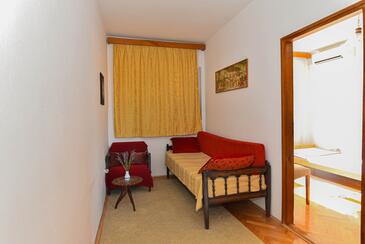 Appartamento può accogliere 5 ospiti. I letti sono disposti nelle camere da letto che sono 2, e nella camera di soggiorno, su 49m2. Gli ospiti hanno a disposizione il proprio terrazzo per godere nelle calde serate estive. Dall'appartamento si gode di una vista sul mare. Per il piacere totale e il relax c'è il barbecue privato solo per gli ospiti di quest'alloggio.