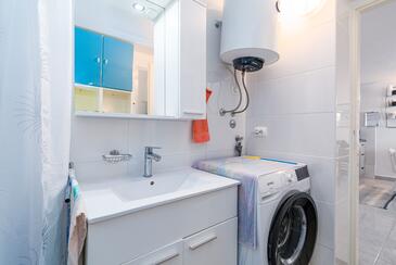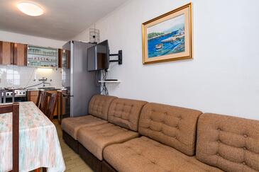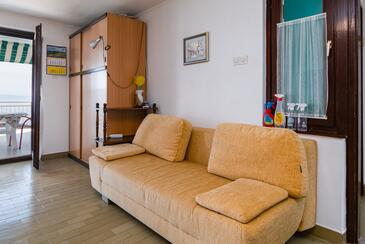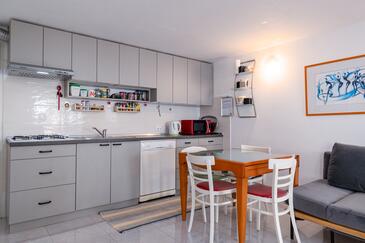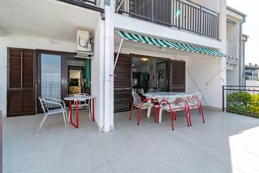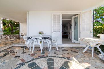 Appartamento può accogliere 6 ospiti. I letti sono disposti nelle camere da letto che sono 2, e nella sala da pranzo, su 50m2. Gli ospiti hanno a disposizione il proprio terrazzo per godere nelle calde serate estive. Dall'appartamento si gode di una vista sul mare. Si può preparare il cibo utilizzando il barbecue comune.
